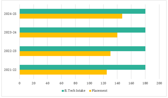 The CSE department has consistently achieved strong placement records over the years. Students have been placed in leading multinational companies such as Virtusa, Wipro, Accenture, TCS, Infosys, Big Works and Capgemini, with top packages reaching up to ₹26 LPA. The department maintains an average pass percentage of around 85%, demonstrating its academic rigor and quality teaching standards.